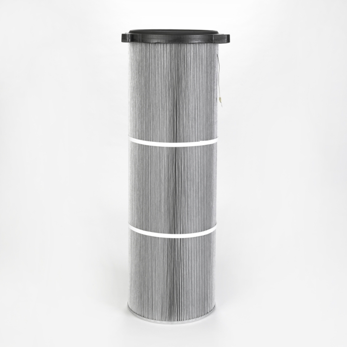 Cartridge Filter with open top end cap with 3 hooks, 180 mm pitch diameter and closed bottom end cap in Polyester Spunbond Anti-Static, 145 mm outer diameter x 1515 mm long including top gasket; Special features: Filter area 3.74 m², Dirty Air Plenum and Clean Air Plenum installation, earthed for Series 145 and other brands of cartridge collectors