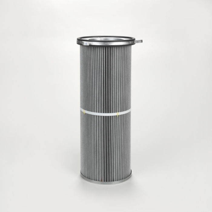 Cartridge Filter with open top end cap with 3 hooks, 207 mm pitch diameter and closed bottom end cap in Ultra-Web Spunbond Anti-Static, 156 mm outer diameter x 600 mm long; Special features: Earthed and Dirty Air Plenum and Clean Air Plenum installation for Series 156 and other brands of cartridge collectors